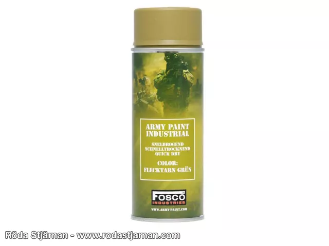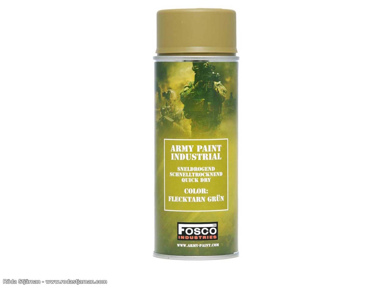 Sprayfärg av mycket hög kvalitet från företaget Fosco Industries. Snabbtorkande samt högpigmenterad vilket gör att den täcker mycket bra och du slipper vänta länge innan du kan måla igen. Mycket slitstark! Utmärkt färg för allt från vapen till mopeder.