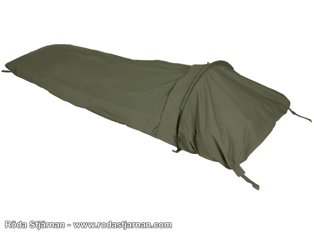 sovsäcksskydd med huvudbåge över huvudänden som ger extra utrymme och bättre ventilation. Konstruktionen gör att tyget inte ligger mot ansiktet, vilket ger en betydligt torrare och mer bekväm sömn under bar himmel och det blir betydligt skönare innuti och mer tältkänsla.